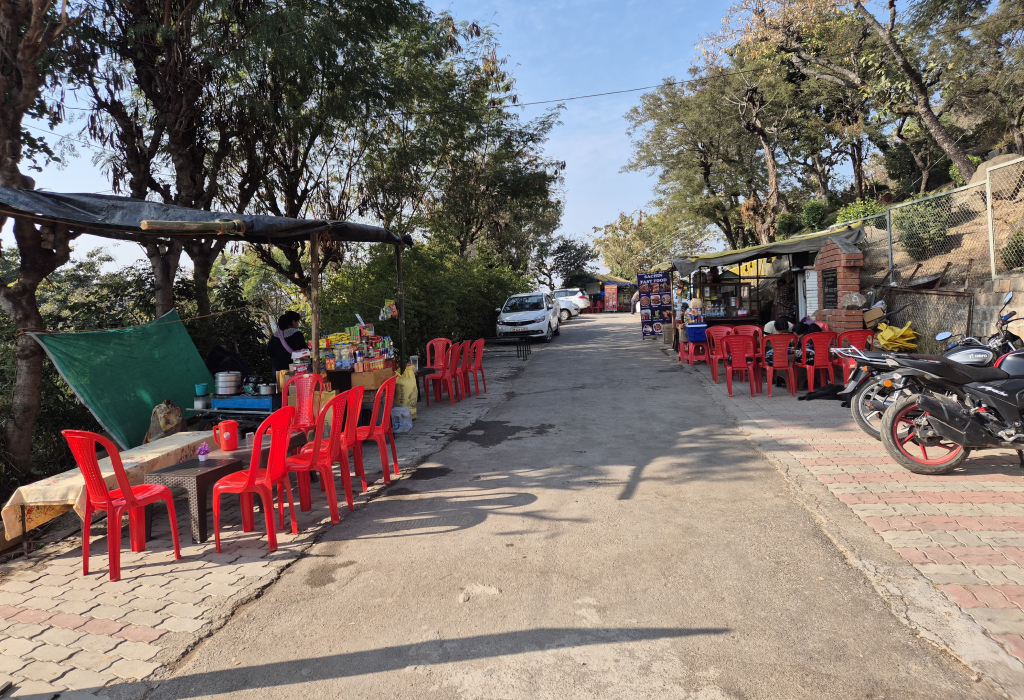 • In the Temple: It has two roadside tea/coffee shops close to the parking space. A cup of chai will cost you around 20 rupees and snacks (biscuits, pakoras, etc.) will cost between 30 and 50 rupees. Bottled water is ~₹20 per bottle. There is no sit-down cafe.